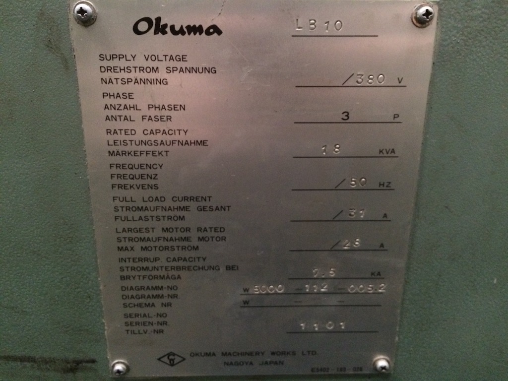 | Control: | Okuma LSP 5000 L |