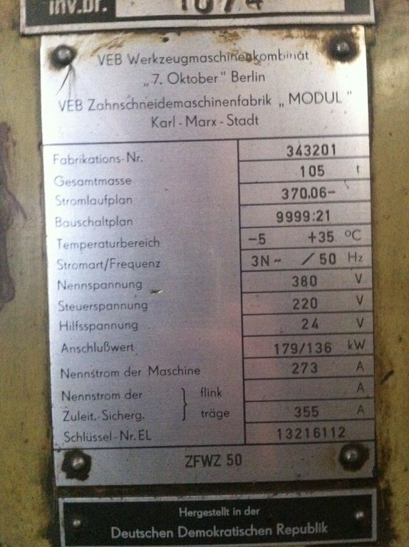 Manufacturer, Model: WMW Modul ZFWZ 50